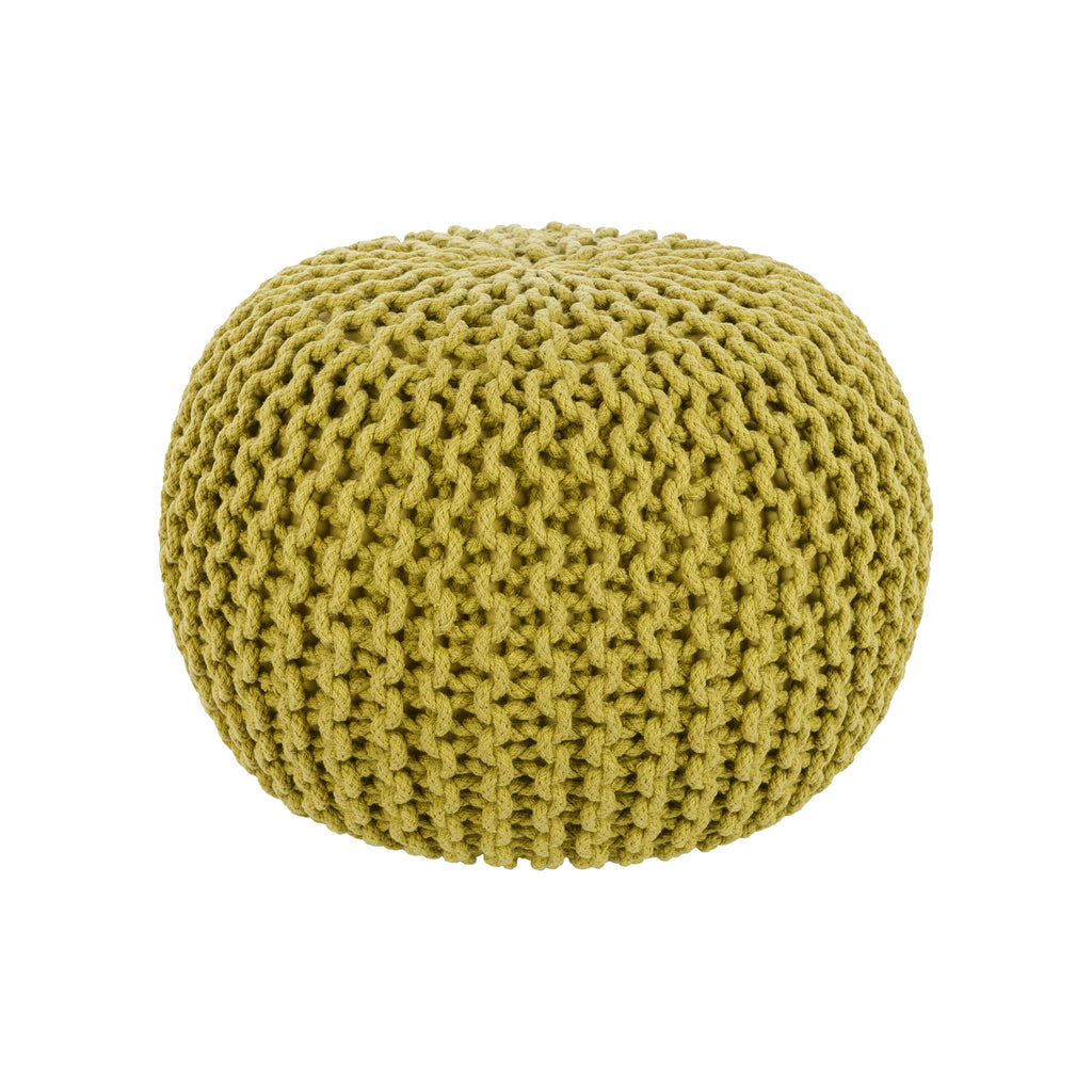 Intricately knit, striking design will surely make a style statement in your space with the inclusion of this utterly exquisite pouf. Hand made in 100% wool, the captivating cable knit design laced with a pop of pristine color will flawlessly fashion a sense of subtly sweet sophistication from room to room within any home decor. Genuinely faultless in aspects of construction and style, this piece embodies impeccable artistry while maintaining principles of affordability and durable design, making it the ideal accessory for your decor.