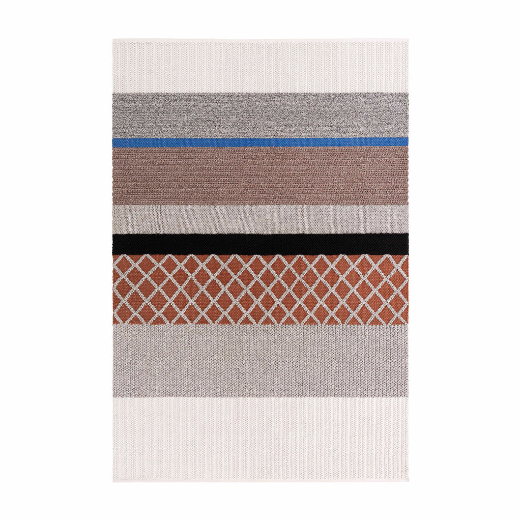 Experience the same volume, texture, and comfort of indoor decor, but in outdoor spaces with the Mangas Outdoor Rug from GAN Rugs. Expertly designed by the legendary Patricia Urquiola, this rug features modular and three-dimensional elements in natural colors of terracotta, stone grey, white, and touches of blue. Expertly crafted from recycled materials, this beautifully soft rug is ready to stand up to the elements accenting a seating group or dining table on the patio or in the garden.