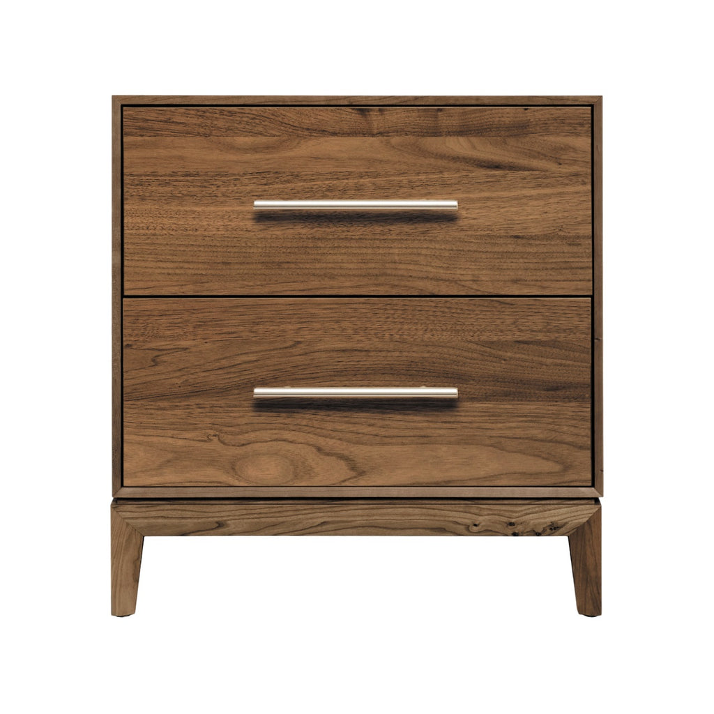 Create the sleep space of your dreams with the Mansfield 2 Drawer Nightstand from Copeland Furniture. Its striking mitered frame and complex facets add visual interest and highlight the solid construction. The black bronze hardware, a fresh take on a traditional form, perfectly complement the selection of case pieces. Crafted in solid cherry or walnut, this nightstand features two drawers for ample storage, keeping bedside essentials close at hand.