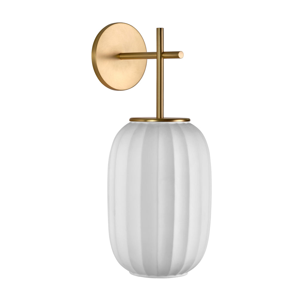 The Mei Wall Sconce from Carpyen is the perfect blend of beauty and practicality. Made from durable metal, it features a porcelain shade that adds a subtle touch of elegance. The ribbed design adds texture while the dimmable LED allows for customizable brightness with an ELV dimmer. Illuminate your space with style and functionality.