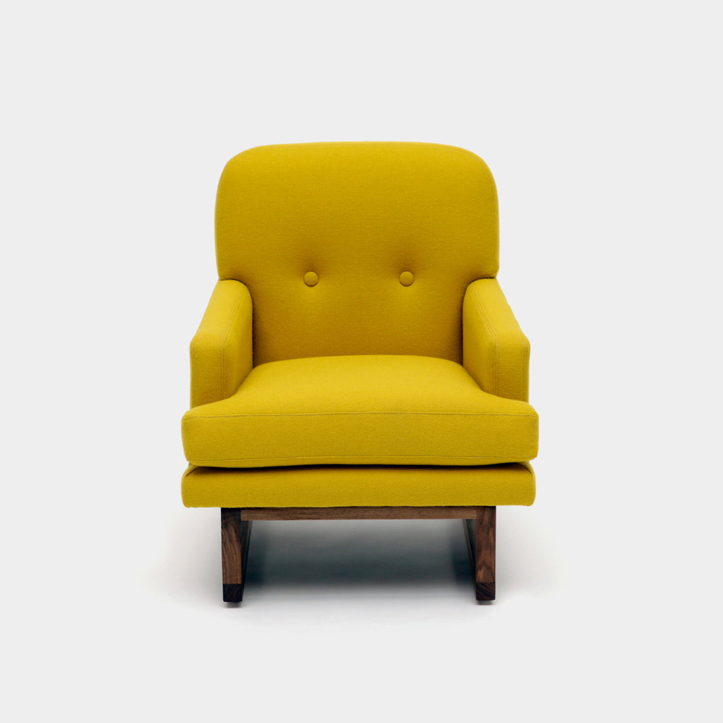 ARTLESS Melinda Chair is melancholy in the shape of the chair. A slight anthropomorphic aspect surrounds its compact frame. While the form is soft and feminine, the back has a bit more tension as the Walnut base and upholstery frame interact.