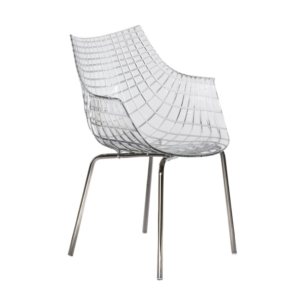 The Meridiana Chair with Steel Base by Driade is a stylish, contemporary armchair. Tailored with sleek steel legs and a polycarbonate seat molded with an exquisite diamond motif, this shimmering design is both charming and versatile, perfectly at ease in the home or office.