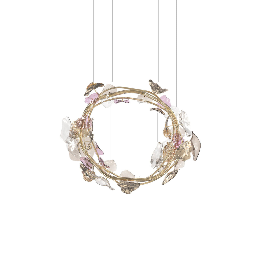 Bring the warmth and beauty of summer into your home with the Midsummer Chandelier from Lasvit. Crafted with vibrant glass, this hanging piece embodies the spirit of the season. Featuring a unique wreath pattern, internally lit with a sparkling LED, this chandelier makes a statement on its own or when paired in multiples of varying sizes for a custom lighting display.