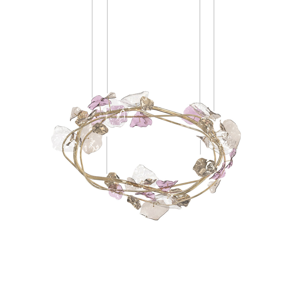 Brighten up your home with the Midsummer Chandelier from Lasvit. This stunning hanging piece, handcrafted with vibrant glass, embodies the warmth and beauty of summer. With a unique wreath pattern and sparkling internal LED light source, it can make a statement on its own or paired in multiple sizes for a custom lighting display.