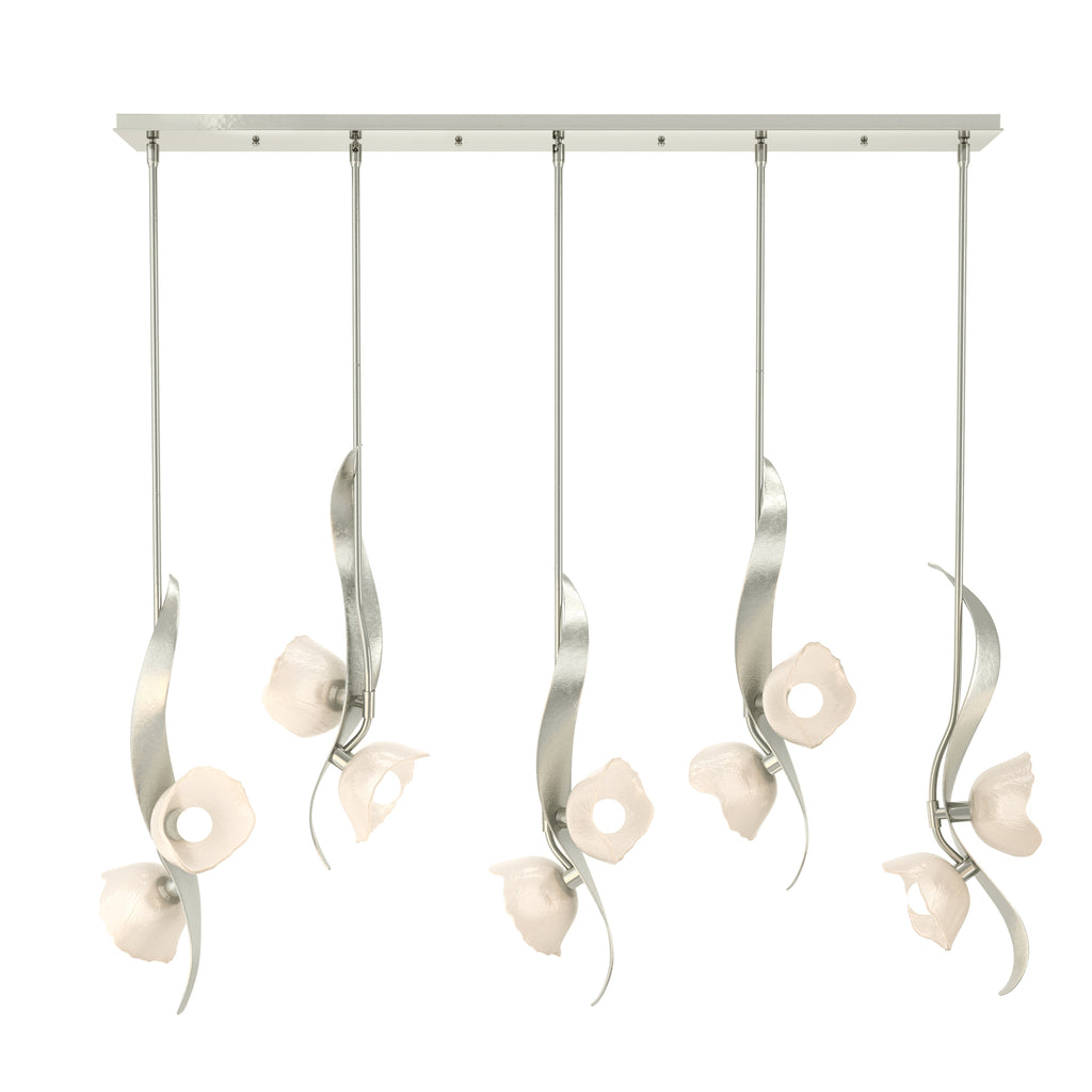 Illuminate your space with the graceful flow of the Mika Linear Pendant Light from Hubbardton Forge. Designed by Ori Goldberg, this sculptural piece captures the elegance of a young dancer. Each steel "tige" features two warm lights, while the handmade Italian glass beautifully complements the hand-forged steel. A true testament to beauty and craftsmanship, this pendant strikes a pose above a dining room table, kitchen island counter, or home bar setting.