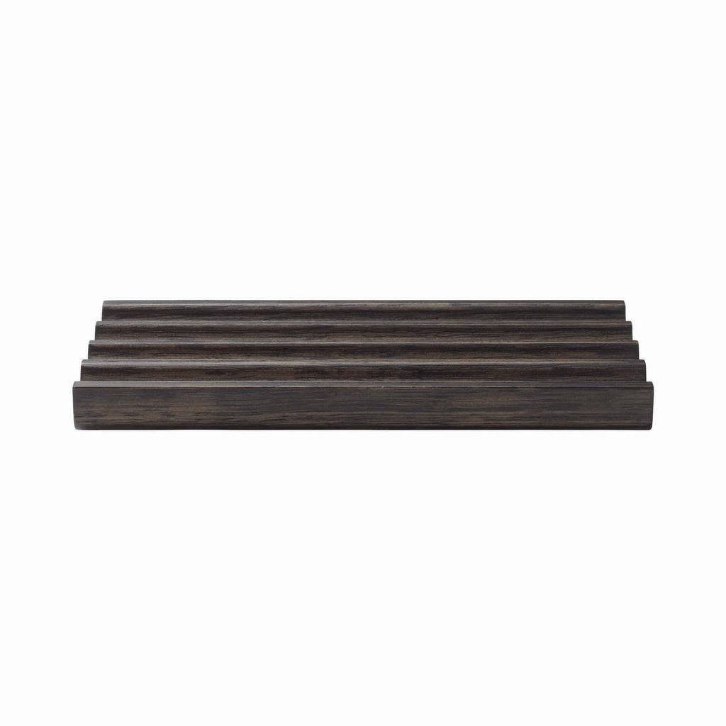 Blomus Modo Rectangular Wood Tray for Wall Shelf fits perfectly into the Modo Wall Shelf and helps organize your favorite Modo bath accessories or toiletries. Texture of this beautiful dark wood tray is perfect for keeping brushes or cosmetics tubes from rolling about. Designed by Nino Thöming of the German design studio Floz Design.