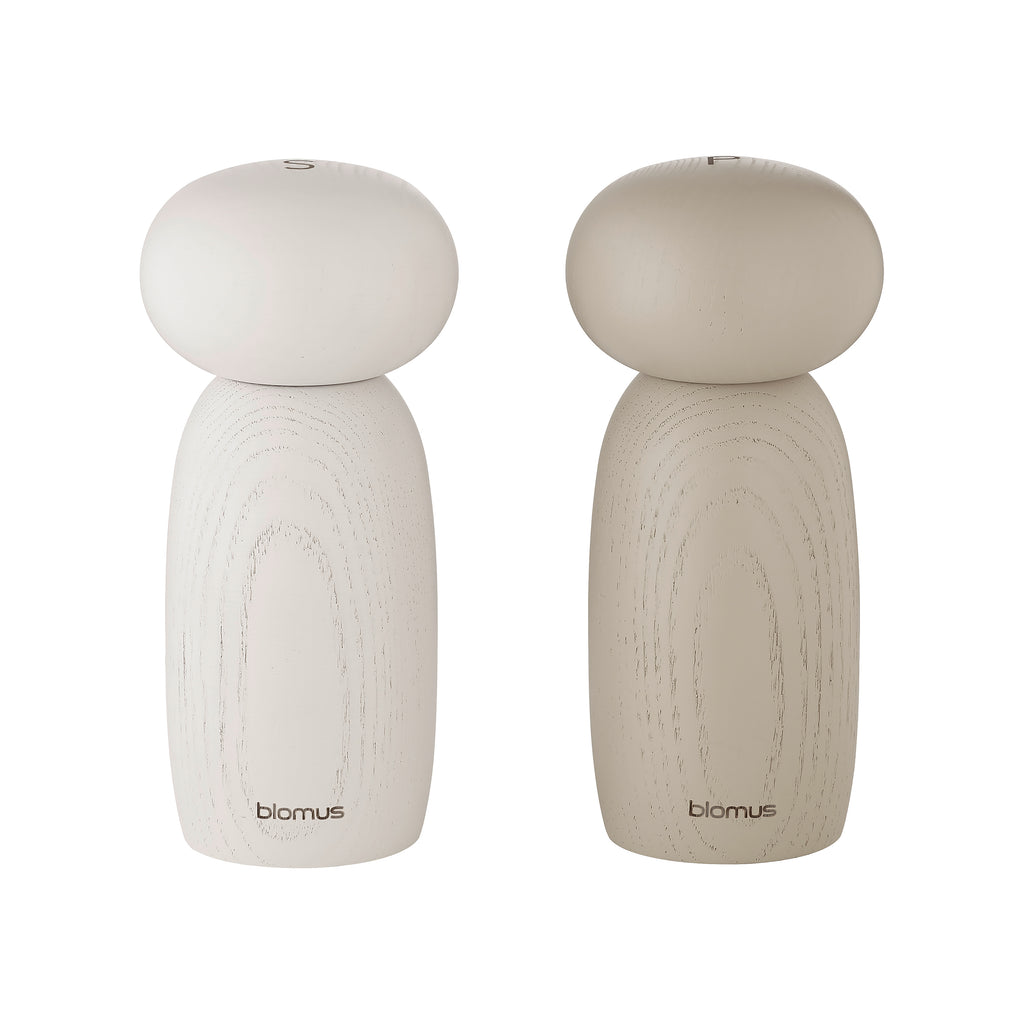 The Moli Salt and Pepper Mill Set from Blomus adds sophistication and practicality to your dining experience. Crafted from color-lacquered ash wood, this two-piece set includes a Moonbeam Salt Mill and Nomad Pepper Grinder with removable lids. The sculptural design, featuring a laser-engraved blomus logo and S & P markings, elevates any table setting.