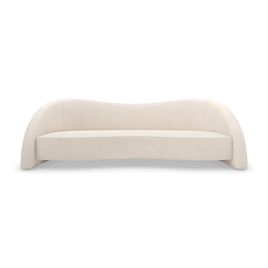 A study in fluid, organic form, the Movement Sofa from Caracole is designed to bring a sense of calm and sculptural beauty to your living space. This beautiful sofa is defined by its sinuous silhouette, with gracefully curving lines that guide the eye along its unique, layered back and enveloping arms. Meticulously tailored in a subtly textured alabaster fabric, this generous three-seater sofa offers a sleek yet exceptionally comfortable place to relax. A fusion of artistic movement and luxurious comfort, it’s an inviting and unforgettable centerpiece for the contemporary home.