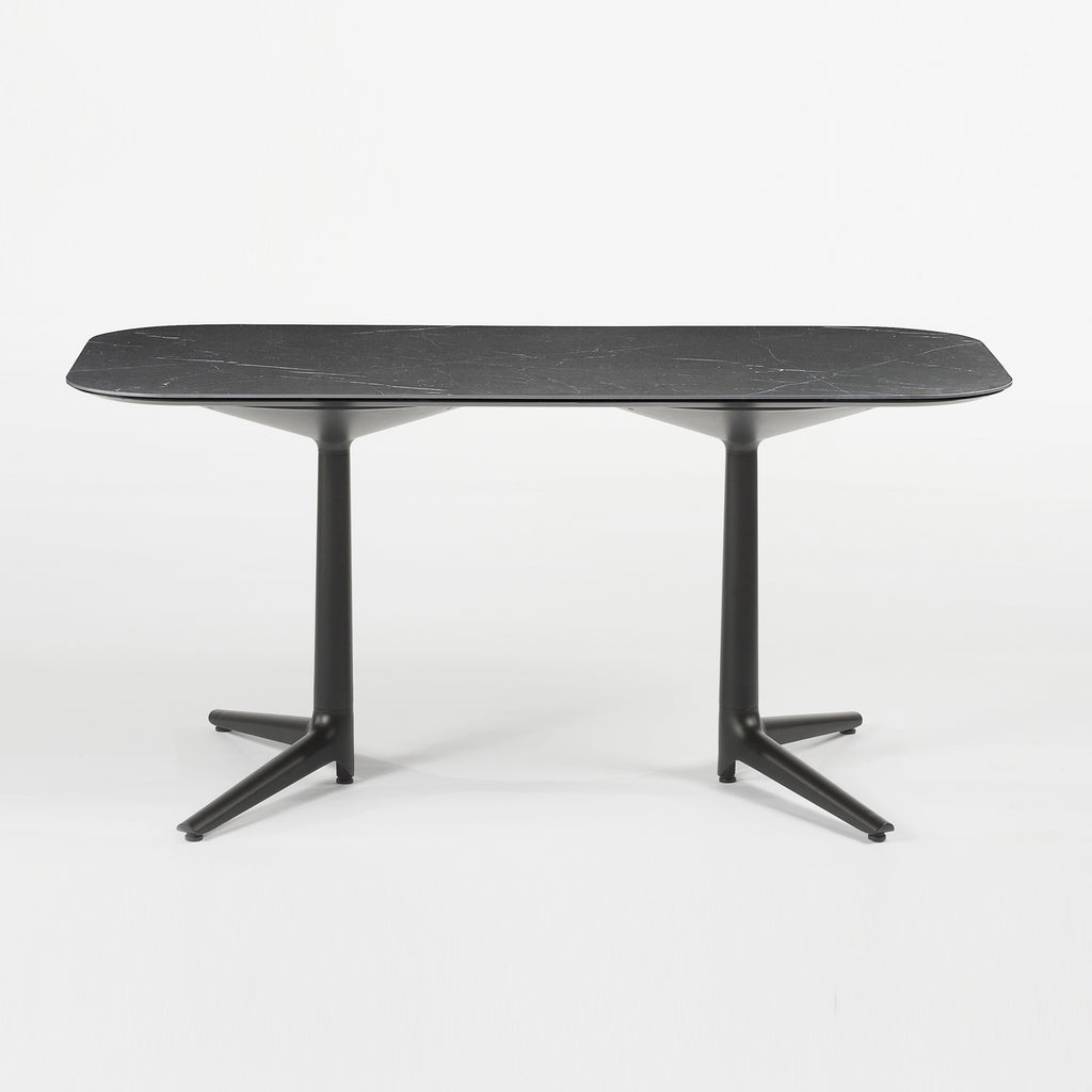 The Multiplo Rectangular Coffee Table from Kartell is an elegant piece of furniture perfect for any décor. Its painted, die-cast aluminum legs splay beneath the spacious, rectangular top, adding a subtle yet stylish geometric flair to the sophisticated silhouette. The spacious tabletop is perfect for hosting drinks, holding décor, and more, creating a practical and decorative space for your home.