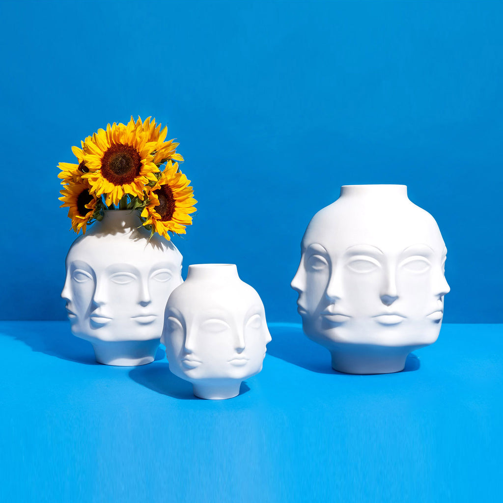Inspired by Dora Maar, the French photographer, poet, and painter, the Muse Dora Maar Vase from Jonathan Adler is a playful and delicate decor piece sure to bring dimension and style to your home. Crafted from unfinished high-fired porcelain, this vase offers incredible detail at every angle. Ready to be filled with your favorite blooms and floral designs, this vase gives good face, no matter where you place it.