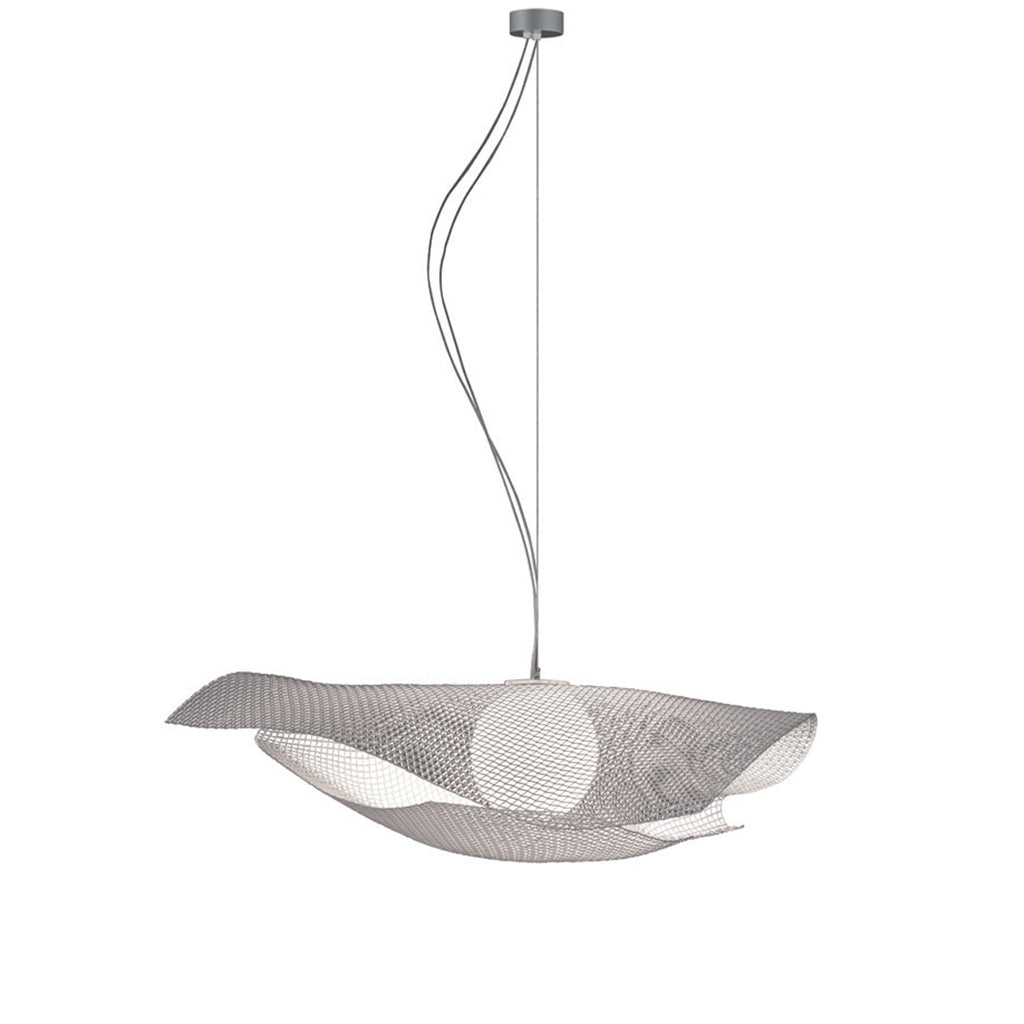 Painted stainless steel mesh and thread. Arturo Alvarez takes materials out of their usual context, exploring their possibilities up to the point of achieving surprising results. He begins with an apparently cold steel mesh or thread, that he folds, curves or embroils, forming organic elements. He transforms it with these crafting techniques in warm and pleasant forms... bringing it to life. A whole universe of designs develops from this way of working. They all radiate a subtle elegance and delicacy, full of movement, and shine an intense light through them. Painted stainless steel is a compact and resistant material, that won't wear out as time goes by.