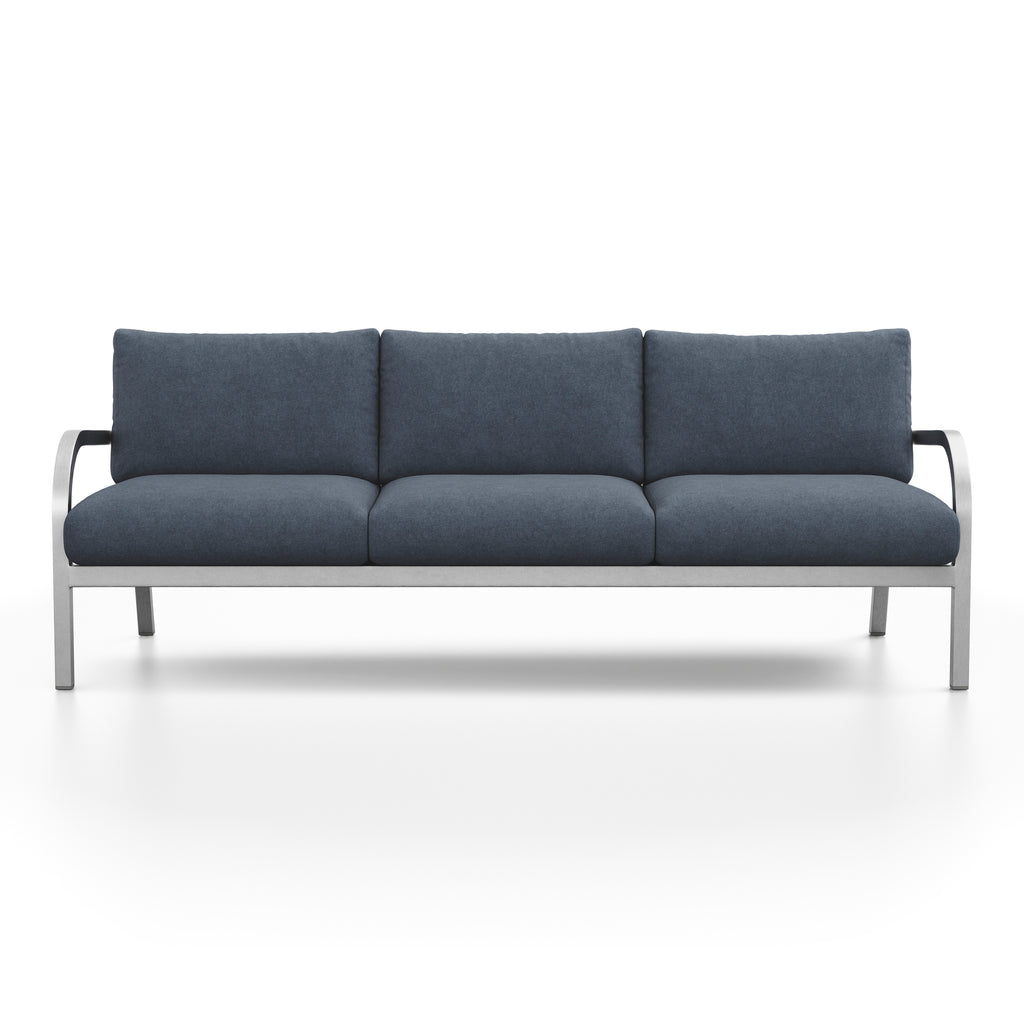 A modern reimagining of Emeco’s iconic 1940s sofa series—originally designed for the U.S. Navy—the Navy Outdoor 3-Seater Sofa delivers the perfect balance of lightness, strength, and timeless style. Its recycled aluminum frame is handcrafted in Hanover, Pennsylvania, using the same meticulous welding and heat-treating process perfected in 1944, resulting in furniture so durable it carries a lifetime warranty, indoors or out. Available in Emeco’s signature hand-brushed finish or a range of powder coat colors, the frame pairs with cushions upholstered in leather, fabric, or outdoor-ready textiles, including Sunbrella® Heritage for all-weather performance. Cushions are removable and secured with snaps and Velcro® for effortless installation, replacement, and seasonal storage.