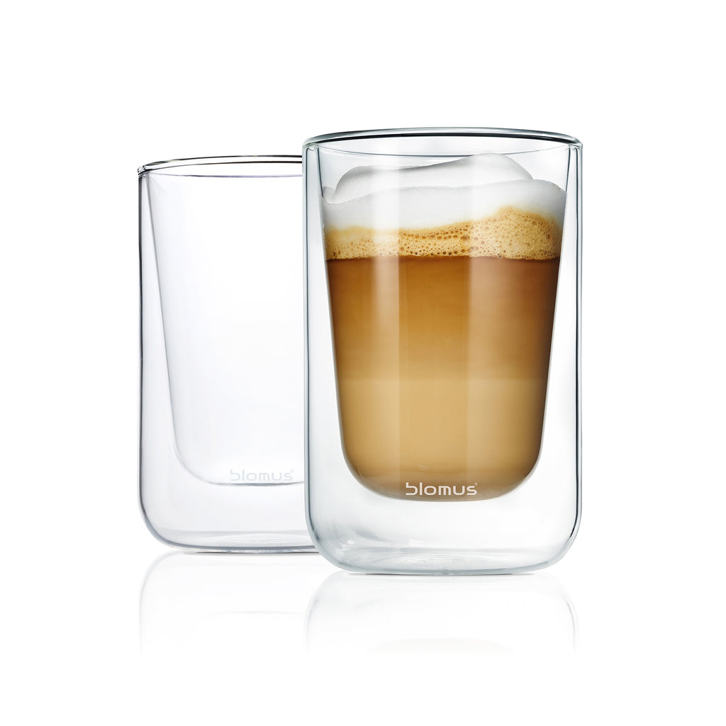 The Blomus Nero double walled insulated glasses guarantee stylish enjoyment. They are perfect for coffee creations from espresso to latte macchiato. Ice cold desserts such as sorbets, or hot soups can also be presented comfortably without burning or freezing your hands.