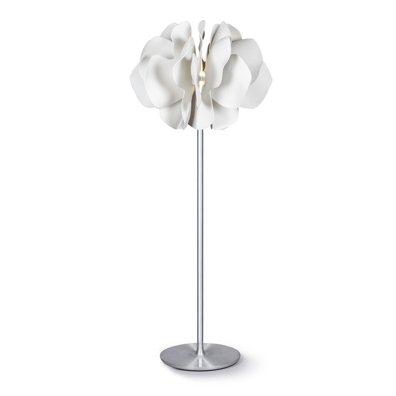 Bring the beauty of nature home with the Nightbloom Floor Lamp from Lladro. Inspired by flower petals dancing in the moonlight, each piece of the porcelain shade is crafted by skilled artisans, and accentuated with subtle textures. The low-key metal base provides a subtle frame to create a stunning play of light and shadow.