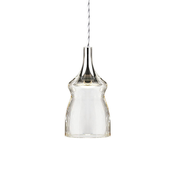 A perfect blend of retro and modern, this decorative pendant design is made from blown glass and utilizes the most advanced led technology. Four different rich colors: gold, silver, rose gold and clear glass gives the possibility to create and play with the fixtures, creating a contact with the same and allowing customization of the compositions. These details and materials, used in their creation, characterizes the influence of the venetian context where the company resides, careful and high-quality workmanship of the glass reflects the ancient tradition of glass. The chrome metal structure holds the led light source, which produces a warm light that becomes slightly visible once lit. The reflective element of the glass remains constant, yet changes with the advent of the light that peers through the glass.