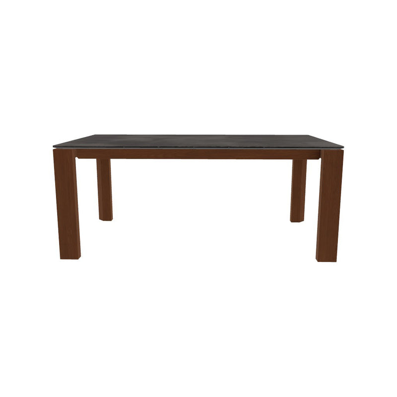 The Omnia table contains an ingenious mechanism able to expand the top surface. Pull the frame towards you so that the two legs with hidden castors slide on one side allowing the leaf to be pulled out. With a simple rotation the leaf fitted on metal tracks comes out of its housing and lines up with the top. The perimeter legs have a slanting cut in the inside part, a distinctive detail in the aesthetics. Omnia is a drop-leaf table for furnishing the dining room. Configure it in the version you prefer.