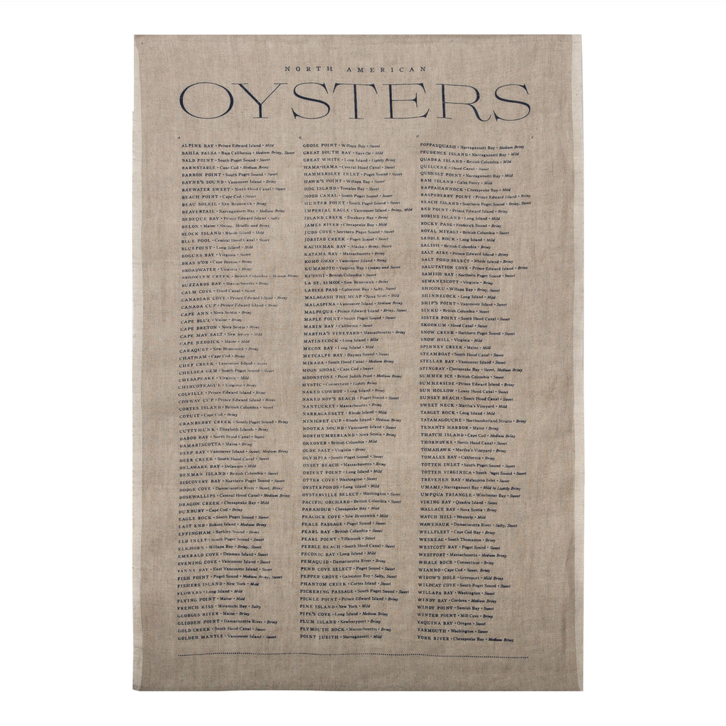Inspired by an English tea towel, the North American tea towel is made from pure linen to avoid surface lint when drying delicate china and glassware. Individually printed using silk screens, each towel is cut from running yardage that comes off the loom with selvage sides before they hem it by hand. SirMadam challenge you to find a more comprehensive list of North American oysters than this index of these tasty little mollusks.