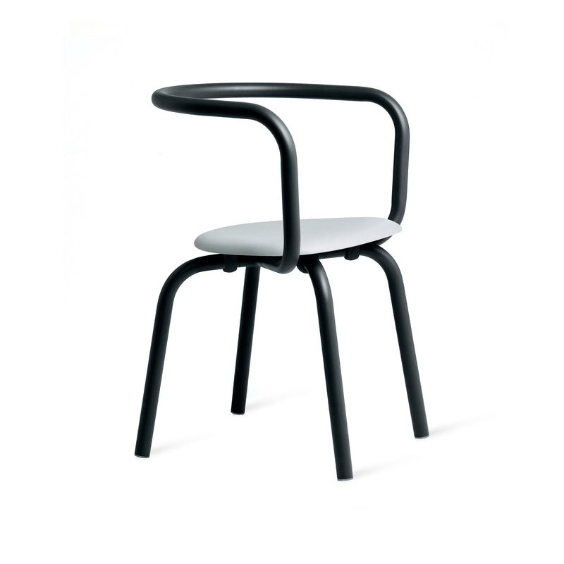 Initially designed for New York's Parrish Art Museum, Emeco's Parrish Armchair combines a subtle aesthetic with a robust technical core. Its slender frame uses 80% recycled aluminum, paired with seats in solid wood or 100% recycled plastic, making select versions ideal for outdoor use.