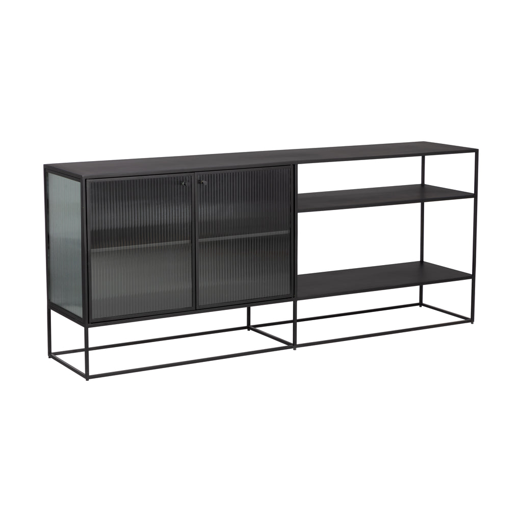 Enhance your living space with the elegant and timeless Parsons Sideboard from Sunpan. Inspired by mid-century modern designs, this large sideboard features a matte black iron frame and fluted glass doors, adding a touch of sophistication to your home. Elevate your style and functionality with this stunning piece.