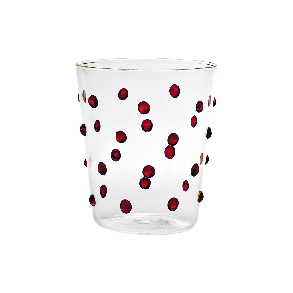 A simple glassware design that makes a lasting impression, the Party Tumbler Glass from Zafferano brings unexpected beauty to any table setting to your home. Handcrafted from borosilicate glass, these tumbler glasses are the perfect size for fresh squeezed juice in the morning or a lively cocktail in the evening. Accented by three dimensional orbs, this simple, yet sophisticated tumbler is ready to elevate your everyday mealtimes or accent your barware collection with classically chic style.
