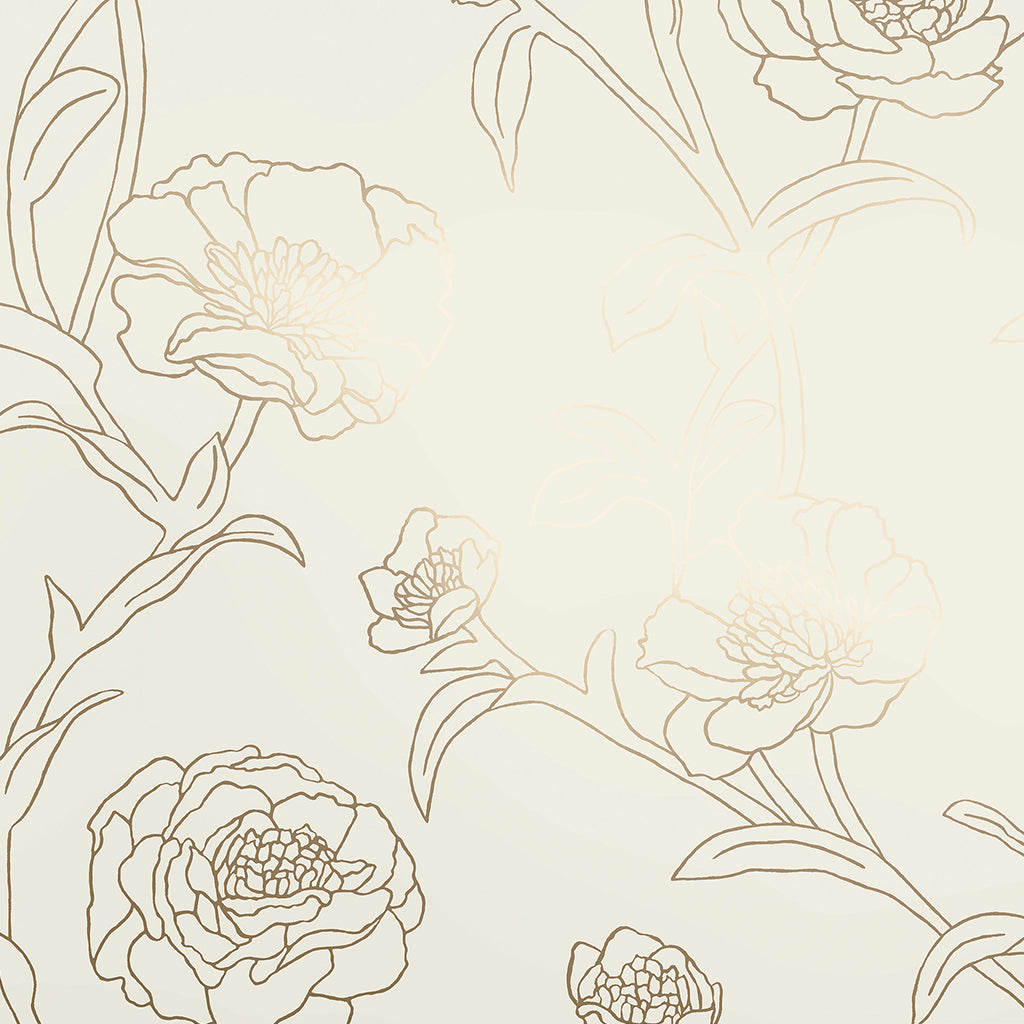 - A distinguished floral removable wallpaper showcasing metallic gold peony outlines, exuding warm sophistication for any space