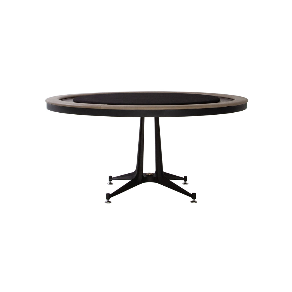 The Poker Table from District Eight sets the stage for a sophisticated game night with its robust construction and refined, player-focused details. Crafted with a solid oak top, its surrounding edge is wrapped in supple leather for hours of comfortable play. A classic felt playing surface offers a smooth glide for cards and chips, all supported by a formidable solid cast iron base. A perfect fusion of industrial strength and tactile elegance, it’s the ultimate game night centerpiece.