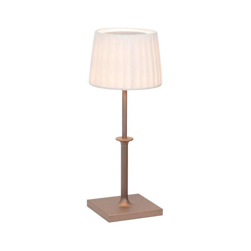 Blending timeless charm with modern freedom, the Poldina Classic Portable LED Table Lamp from Zafferano reimagines the traditional lamp for a cordless lifestyle. Designed in Italy, it pairs a classic pleated fabric shade with a painted aluminum body for a soft, welcoming glow. Its innovative, removable light module is fully rechargeable, offering hours of illumination anywhere you need it. With touch controls to dim the brightness and select the light’s color temperature, it’s a sophisticated solution for creating the perfect ambiance.