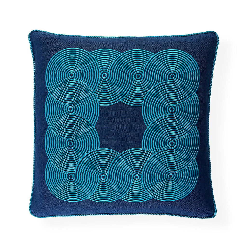 Transform your favorite living or lounge space with the luxurious Pompidou Border Pillow from Jonathan Adler. Its 70s-inspired pattern, paired with rich colors and dimensional details, make for a strong statement or a subtle boost. Made with high-quality linen and embellished with a raised satin stitch and corded edge, this best-selling design is ready to bring a pop of pattern and texture to your home.