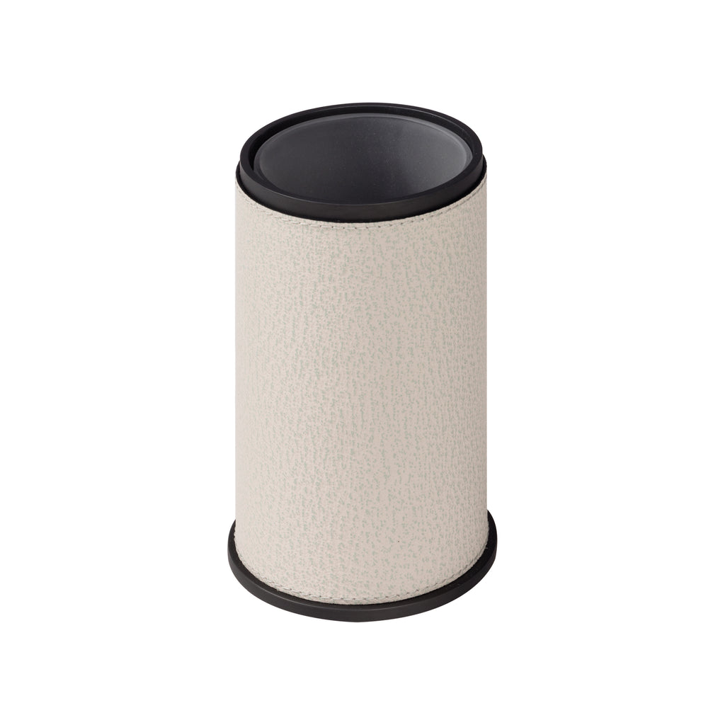 Bringing the sophisticated charm of the Italian coast to your countertop, the Positano Toothbrush Holder from Giobagnara elevates a daily essential into an object of art. Expertly handcrafted in Italy, this piece is built upon a solid brass structure, giving it a satisfying heft and stability. The body is meticulously wrapped in uniquely textured calfskin leather, while polished brass accents add a touch of warmth. A testament to exquisite craftsmanship, it's a perfect finishing touch for a well-appointed bathroom.