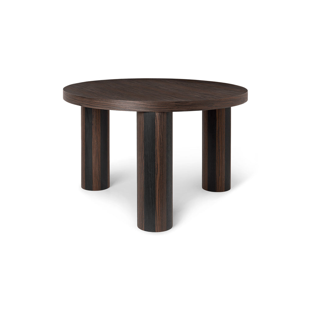 A seemingly simple, round table, the Post Wood Coffee Table from Ferm Living draws you in with its intricate details. Playing with volume and oversized forms, this brutalist-inspired design is topped with an elegant striped or star inlay achieved through a technique known as marquetry. Pair in multiples for a dynamic design ready elevate any interior.