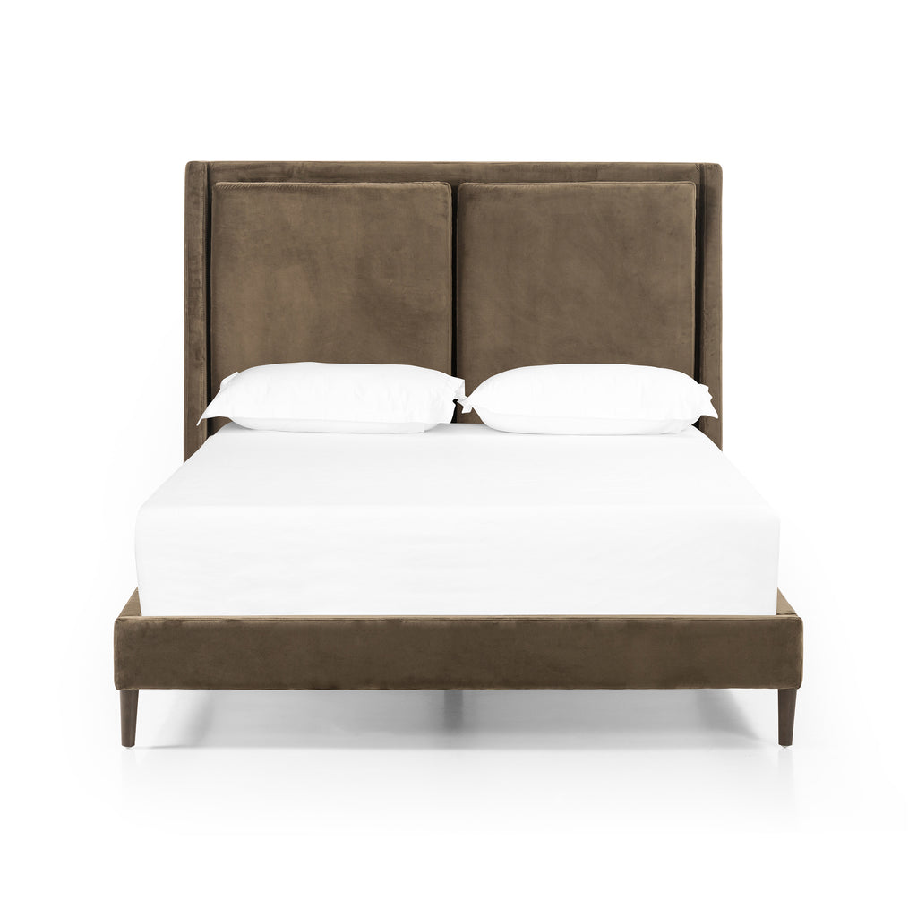 Offering the perfect balance of lightness and luxury, the Potter Bed from Four Hands brings livable luxury to your well-appointed home. With its upholstered fabric headboard featuring overscale pillows and wire-brushed parawood legs, this bed is a chic addition to any primary or guest bedroom. Comfort and durability are ensured with its performance fabric, providing a sophisticated and elegant piece to last for years.