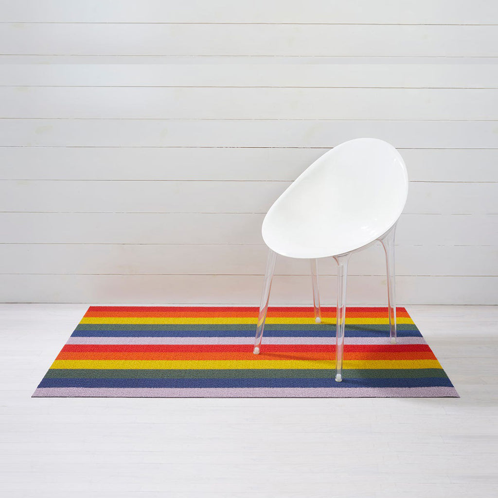 The latest addition to Chilewich’s collection of durable and distinctive Shag floor mats is tufted in colorful stripes inspired by the rainbow of LGBTQ identities. Shag mats are ideal for entryways, bathrooms, patios, and pool areas. Easy to clean and quick to dry, they are resistant to staining, fading, mold, mildew, and chlorine.