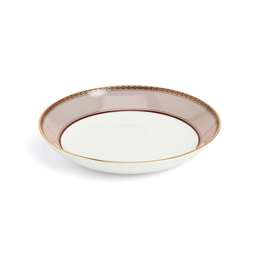 A luxurious reinterpretation of a classic holiday motif, the Red Splendour Deep Plate from Wedgwood is designed to elevate your dining experience. This stunning plate is crafted from fine bone china and features a contemporary take on the classic Mistletoe design. The rich, deep red border is detailed with playful stripes, delicate beading, and lustrous 22-carat gold highlights. A fusion of traditional inspiration and contemporary flair, it’s a beautiful addition to an elegant holiday table.