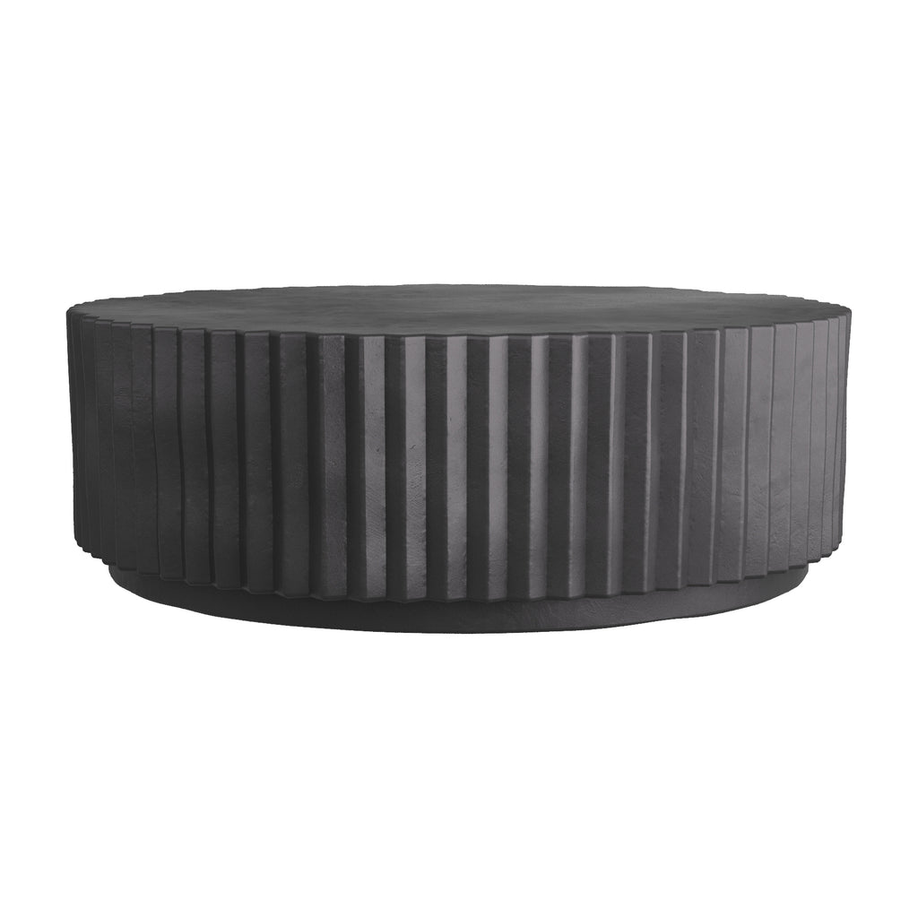 With ribbed side detailing resembling a machine gear, the Reese coffee table is striking indoors. In black concrete, the table bestows a stylish edge to any space.