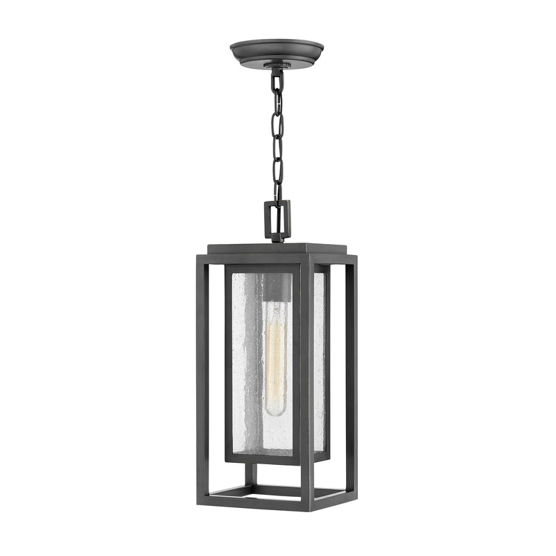 A timeless and exceptionally durable design, the Republic Pendant Light from Hinkley is built to withstand the elements with classic style. This versatile lantern features a striking double frame, crafted from a composite material treated with an anti-fading agent. The clear, seedy glass panels add a touch of vintage, coastal charm and create a beautifully diffused glow. A fusion of timeless design and resilient construction, it’s a sophisticated and lasting lighting choice for any covered porch or entryway.