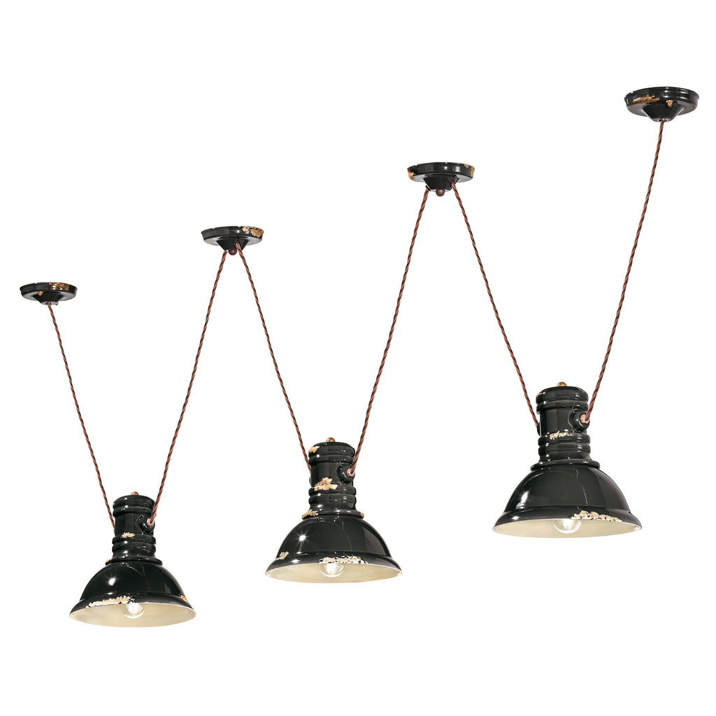 The Retro Industrial Mulit-Light from Ferroluce is a stylish blend of vintage and industrial design. Featuring a trio of ceramic dome shades, the fixture is suspended from a braided cable that can be adjusted to your desired position for a unique and timeless look. Embrace an edgy, contemporary style in your home with this eye-catching pendant light.