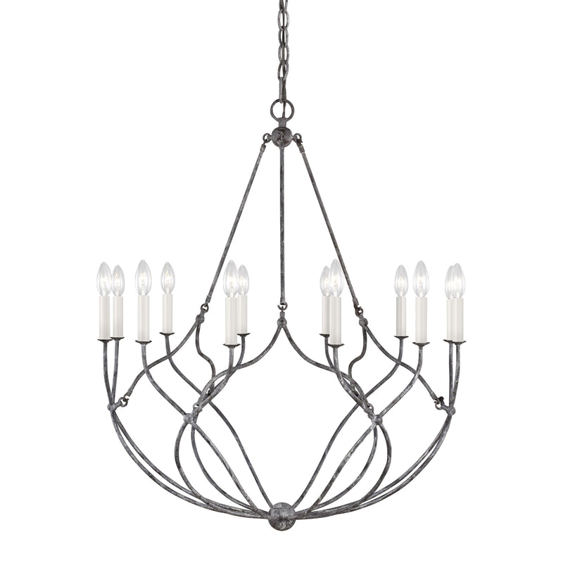 The Chapman and Myers Richmond Chandelier lends romance and whimsy to any space. A Weathered Galvanized finish forms the twisted fixtures of the eye-catching Richmond series designed by Chapman & Myers . This exquisite piece features cream candle tubes and epitomizes the timeless French Country style. Since it is damp-rated, Chapman and Myers Richmond makes a great statement piece in indoor as well as covered outdoor spaces.