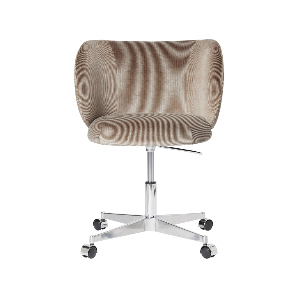 Defined by its soft lines and a modern, voluminous expression, the Rico Dining Chair from Ferm Living brings a new level of comfort to the table. This elegant chair features a sturdy inner structure of steel and FSC™-certified wood, which is then enveloped in a comfortable molded foam. Upholstered in a unique and textural Devoré Velvet, its embracing, curvy form provides an inviting sit. Set on a polished aluminum base with smooth-rolling castors, it offers effortless mobility, making it a sophisticated and versatile choice for the modern dining room or workspace.