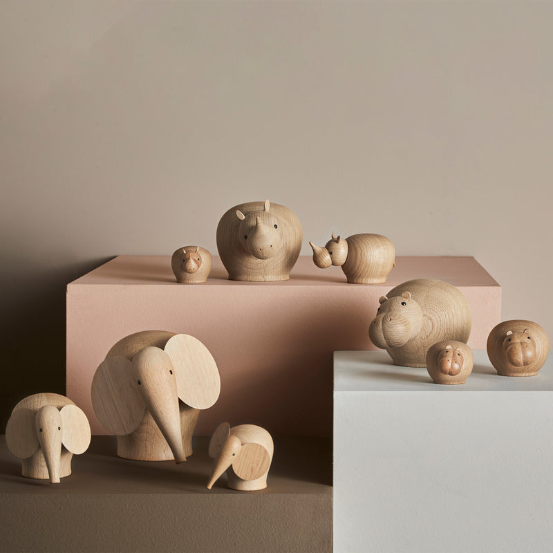 Beautifully combining Danish craftsmanship tradition with Nordic influences, the Scandinavian Animalia Sculptures from WOUD add a playful, sculptural accent to a variety of interiors. Simple, and loveable, these solid oak sculptures are crafted with pleasant expressions and heads that can be tilted side to side for a charming accent as part of a coffee table, mantle, or bedside table display.