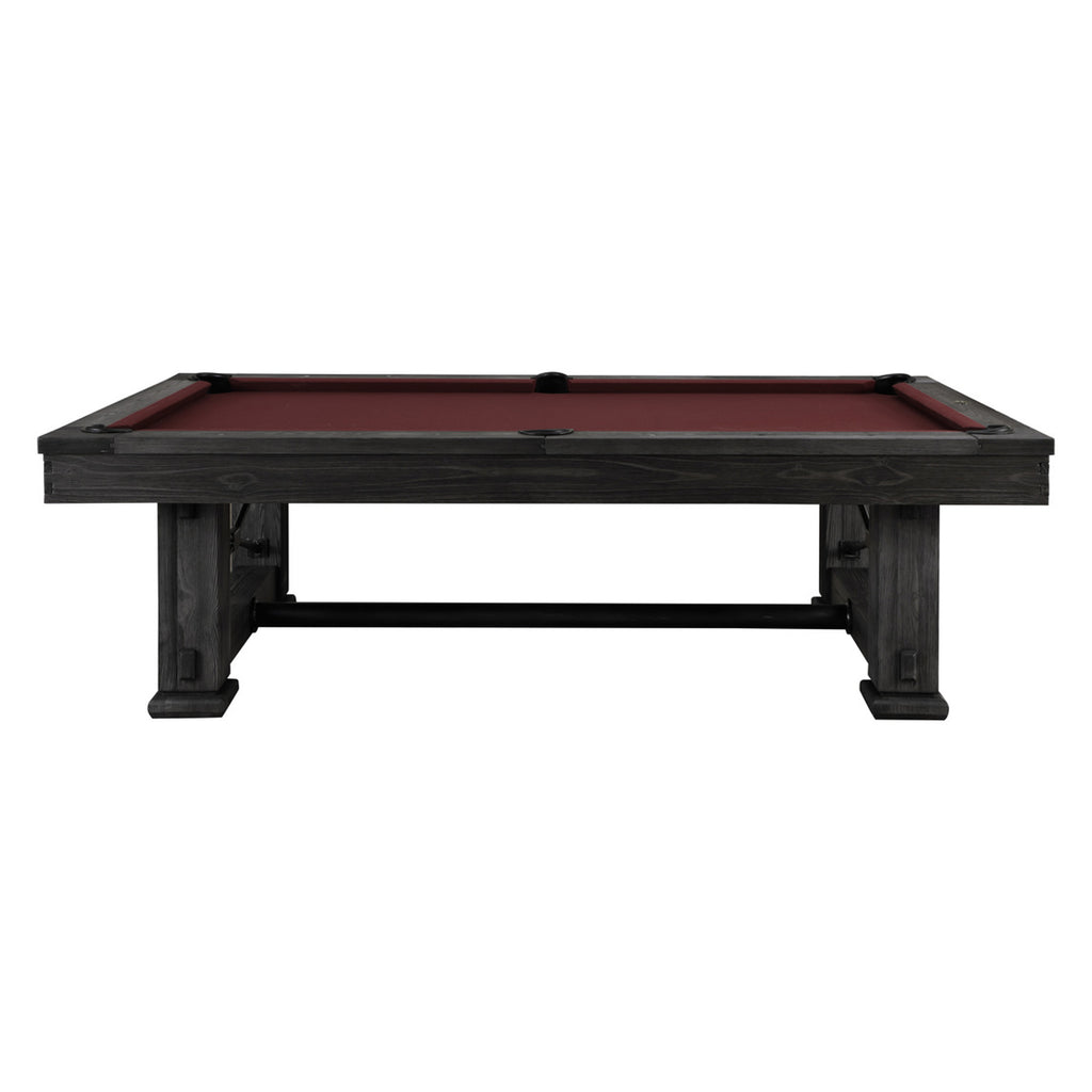 The Rio Grande Slate Pool Table from Playcraft combines timeless craftsmanship with durable performance. Featuring a post and beam leg design with artisan joinery and hand finishing, its Weathered Bark or Weathered Raven finish evokes the charm of reclaimed barn wood. Built to BCA standards, it includes premium K66 gum rubber cushions and inlaid sights on the rails for precise play. This elegant table promises lasting quality and refined style, perfect for memorable billiards gatherings with family and friends.