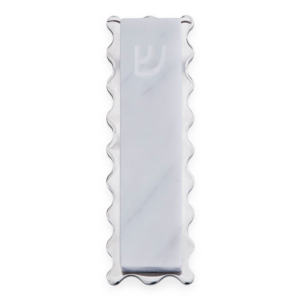 Let visitors know they’re entering the abode of one of the most stylish members of the tribe. The white marble Ripple Mezuzah features an engraved Shin and a shiny nickel perimeter.