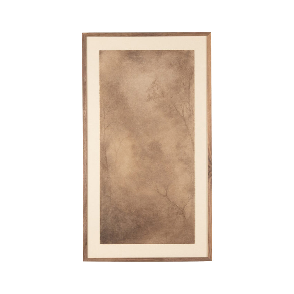 Inspired by natural elements, "Roam" by Austin-based artist Aileen Fitzgerald is an atmospheric landscape reminiscent of early Impressionism. Printed on textured fine art paper with deckled edges for enhanced movement, this piece is framed within rustic walnut for a museum-quality look. Handmade in Austin, Texas.