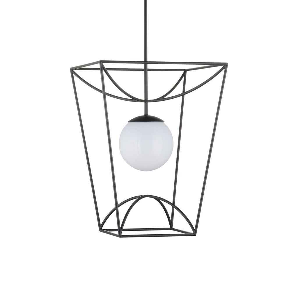 The Rochefort Outdoor Pendant Light from Currey & Company is the perfect combination of durability and sophistication. With a black powder-coated finish, it can withstand outdoor environments while adding a touch of elegance with its milky white glass globe. Its sleek design makes it suitable for a variety of home styles, perfect above dining or lounge tables, entryways, and hallways alike.
