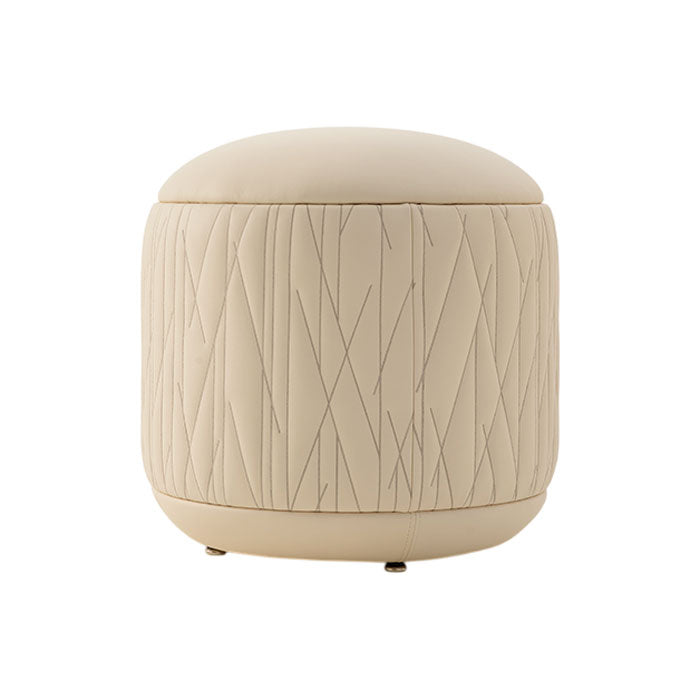 The Roma Pouf from Turri, fully padded and covered in leather, complements the Roma beauty collection with its signature geometric embroidery. This design reinterprets Turri’s historical handmade ornamentation through a modern pattern, seamlessly blending tradition and contemporary elegance. A refined accent that enhances any sophisticated space.