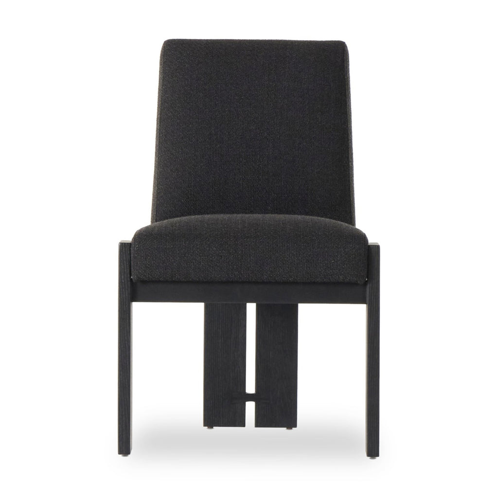 The Roxy Dining Chair from Four Hands makes a striking statement with its bold, monochromatic profile and distinctive angular geometry. Crafted from solid oak, the frame features meticulous butterfly joinery and a slender, open back that balances its dark, moody aesthetic. Wrapped in high-performance upholstery, the contoured seat is engineered for longevity and ease, offering a refined, modern seating solution that doesn’t sacrifice durability for style.