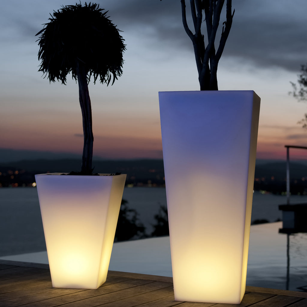Bring an illuminated touch to your patio or pool deck with the Rumba Illuminated Bluetooth LED Outdoor Pot Plant from Smart and Green. Crafted from polyethylene and wet rated for outdoor use, this planter/lamp is the perfect size and square shape to hold your favorite plants and shrubbery to craft a stunning outdoor design. Ready to bring your outdoor space to the next level, this pot is outfitted with Bluetooth and Smartmesh technology allowing you to control the brightness and color of the light from your smartphone or tablet. Flank either side of an entryway door or place amongst your favorite garden dining area for accent lighting sure to delight and inspire.