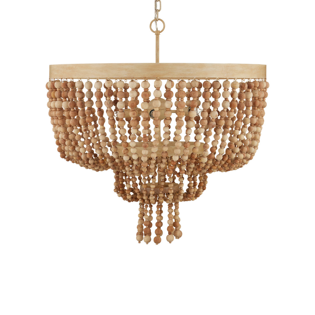 Elevate your space with the rustic beauty of Sabia Chandelier from Currey & Company. Crafted with a durable metal frame, this chandelier seamlessly blends transitional design with organic aesthetics. The warm glow of candelabra base lights and charming wood bead accents create an inviting ambiance. Easily adjust the brightness level with a separate ELV dimmer.