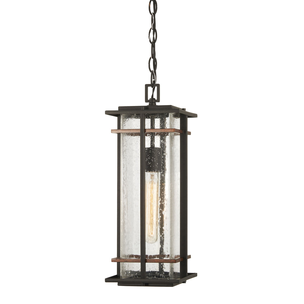 - Available in Black finish with Antique Copper accents with Clear Seeded glass