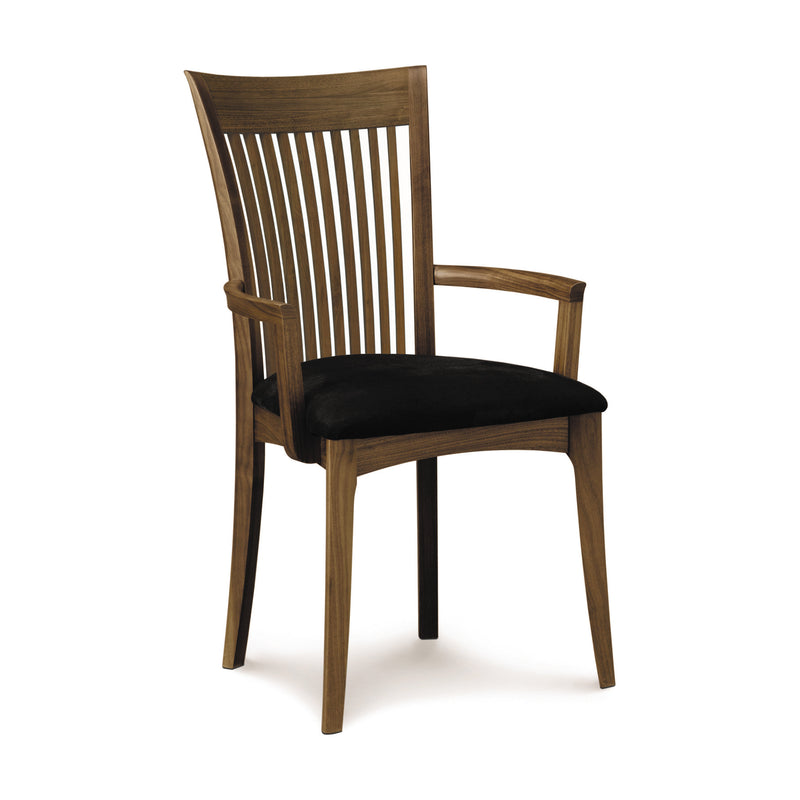 The Sarah Upholstered Dining Armchair from Copeland Furniture reflects the timeless elegance of Shaker design with its clean lines and balanced proportions. Crafted from solid wood, each chair showcases unique natural grain variations and hand-applied finishes, highlighting its artisanal quality. Expertly assembled using traditional joinery, the chair offers a smooth, flawless finish. Multiple hand-sanded coats of varnish protect against stains, moisture, heat, and wear, ensuring durability while maintaining a refined appearance. This armchair combines sophistication with lasting craftsmanship, making it a distinguished addition to any dining space.