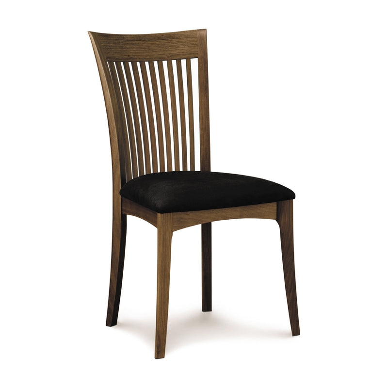The Sarah Upholstered Side Chair from Copeland Furniture embodies the refined simplicity of Shaker design with its clean lines and balanced proportions. Crafted from solid wood, each chair features unique grain patterns and hand-applied finishes that celebrate natural beauty and artisanal quality. Expertly constructed using traditional joinery, the chair’s smooth, flush surfaces reflect meticulous hand sanding and assembly. Multiple hand-sanded coats of varnish provide durable protection against stains, moisture, heat, and wear, ensuring this chair remains a sophisticated and enduring addition to your dining room.